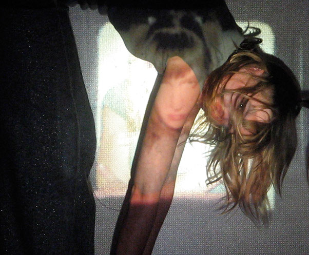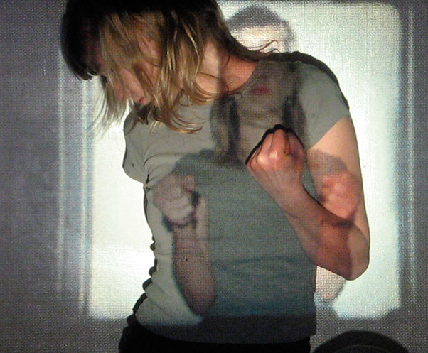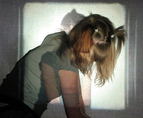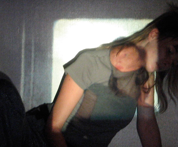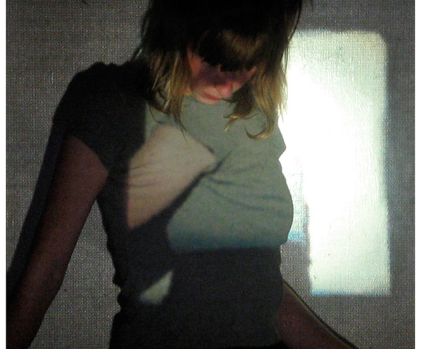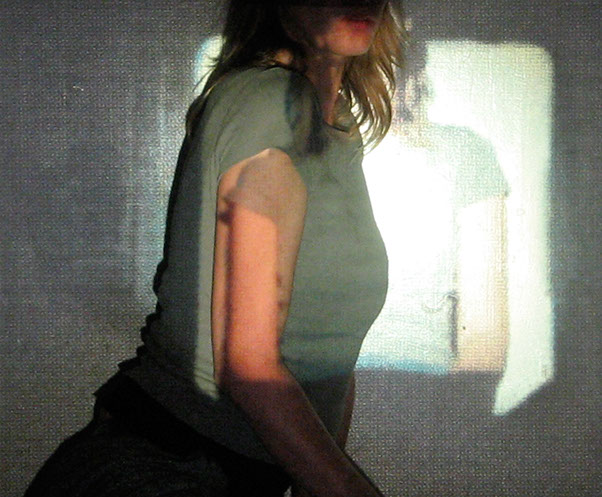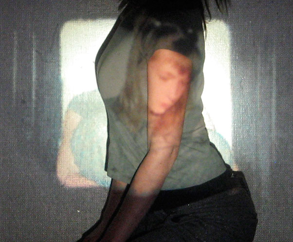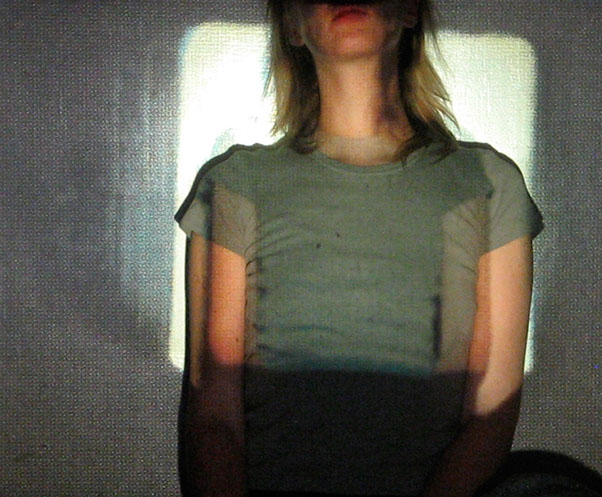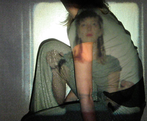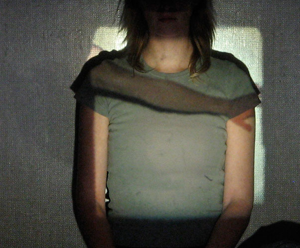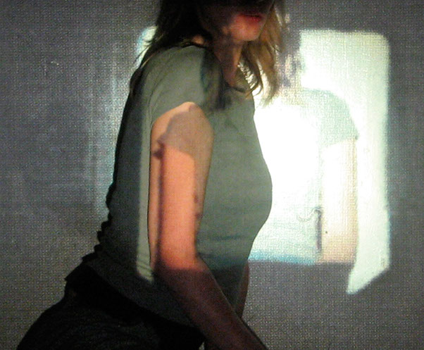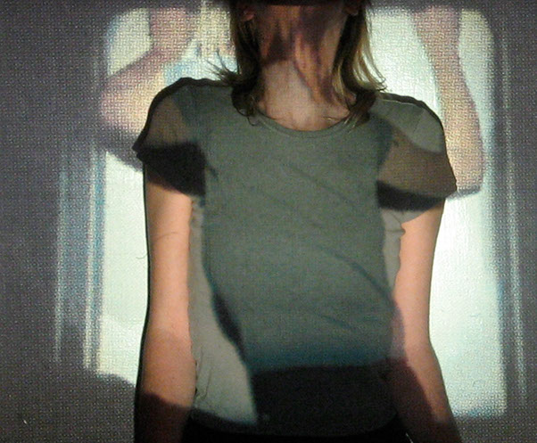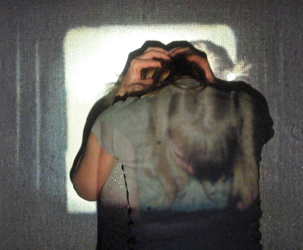 Me interesa el espacio que se construye entre las imágenes proyectadas y mis posiciones corporales frente o dentro de ellas. Esto es lo que éstas imágenes muestran: la relación entre dos imágenes, momentos y posiciones distintas, pero cercanas.